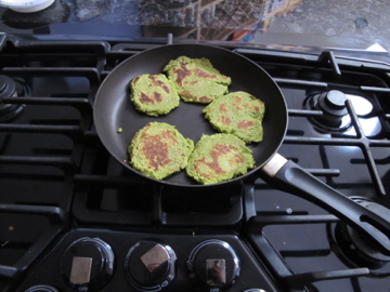 Wet your hands and make into burgers or meatballs. You can probably grill these too, but I do not have a grill. These green power burgers go great with a side salad.