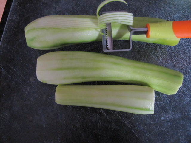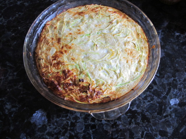 I really love quiches. The crust is usually the least healthy part so I made a crustless quiche this time. The quiche was so good the crust was not missed. The key to my quiche was using the right tool. My new peeler. I make zucchini pasta with it all the time (shred your zucchini, add a little water, cover it and microwave for 2 minutes. Drain out the water well. Pour on sauce and cheese, YUM) but today I used it to make my quiche. The peeler is pictured above. It is hard to see the really fine shreds it makes, but it really works.